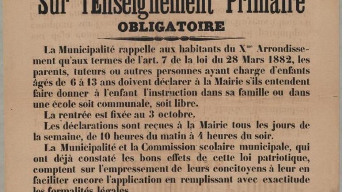 Effectivement la loi du 28 mars 1882 rend l’école gratuite et obligatoire de six ans à treize ans révolus.